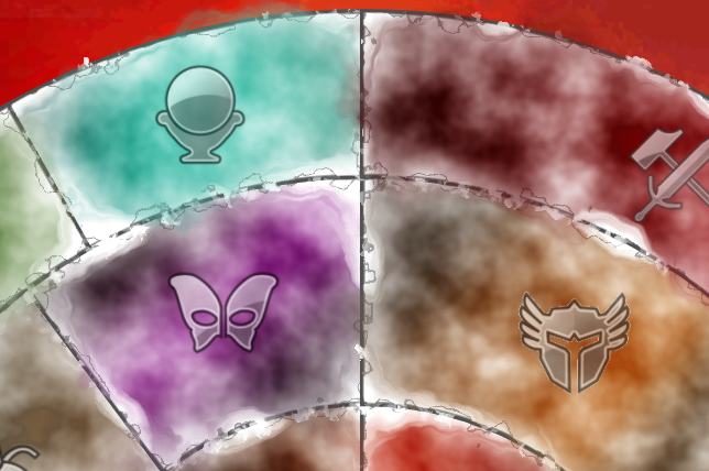Guild Wars 2 interface elements employ a sort of grungy abstract, water-paint aesthetic that incorporates heavy, fast brush strokes.
