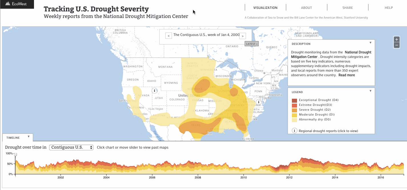 EcoWest Visualizations is a data visualization story telling framework I designed and developed for Standford's Bill Lane Center for the American West in collaboration with renown journalist Geoff McGhee.